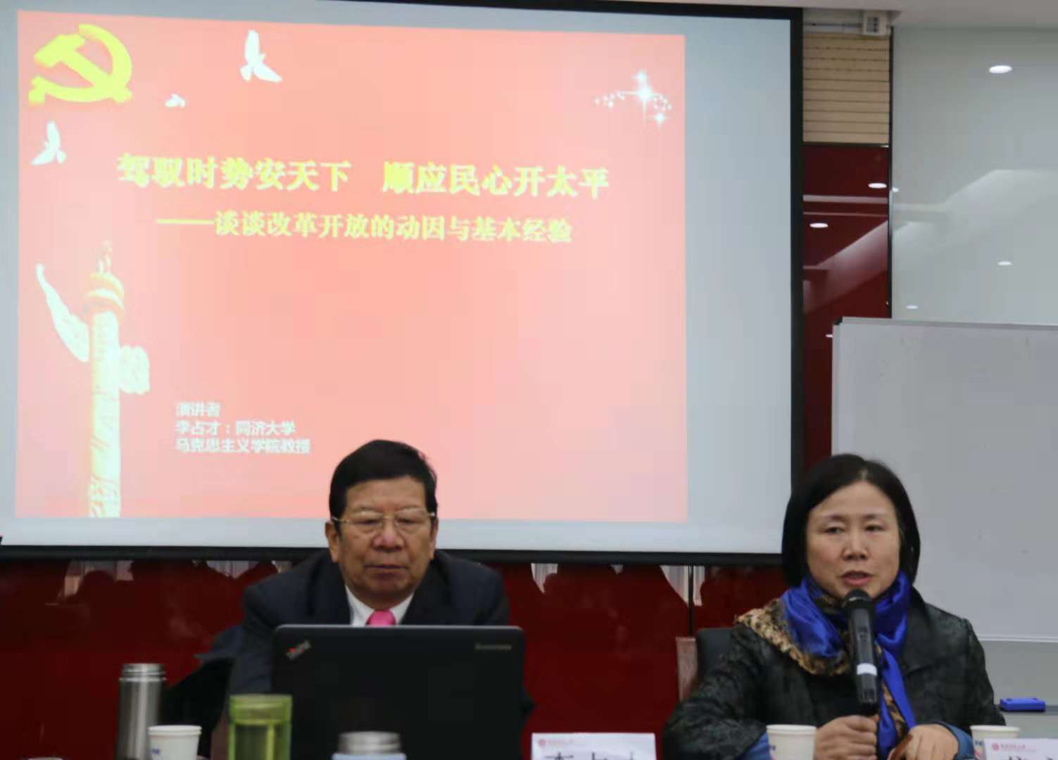 为庆祝改革开放40周年,进一步深刻认识习总书记关于“改革开放是当代中国发展进步的必由之路,是实现中国梦的必由之路”的论断。11月23日,马克思主义学院研究生党员与入党积极分子在法商北楼225报告厅开展了主题党日活动,邀请同济大学马克思主义学院副院长李占才教授担任主讲嘉宾,进行“改革开放的动因与基本经验”专题学习。学习活动由马克思主义学院党委委员、副院长龚咏梅同志主持。