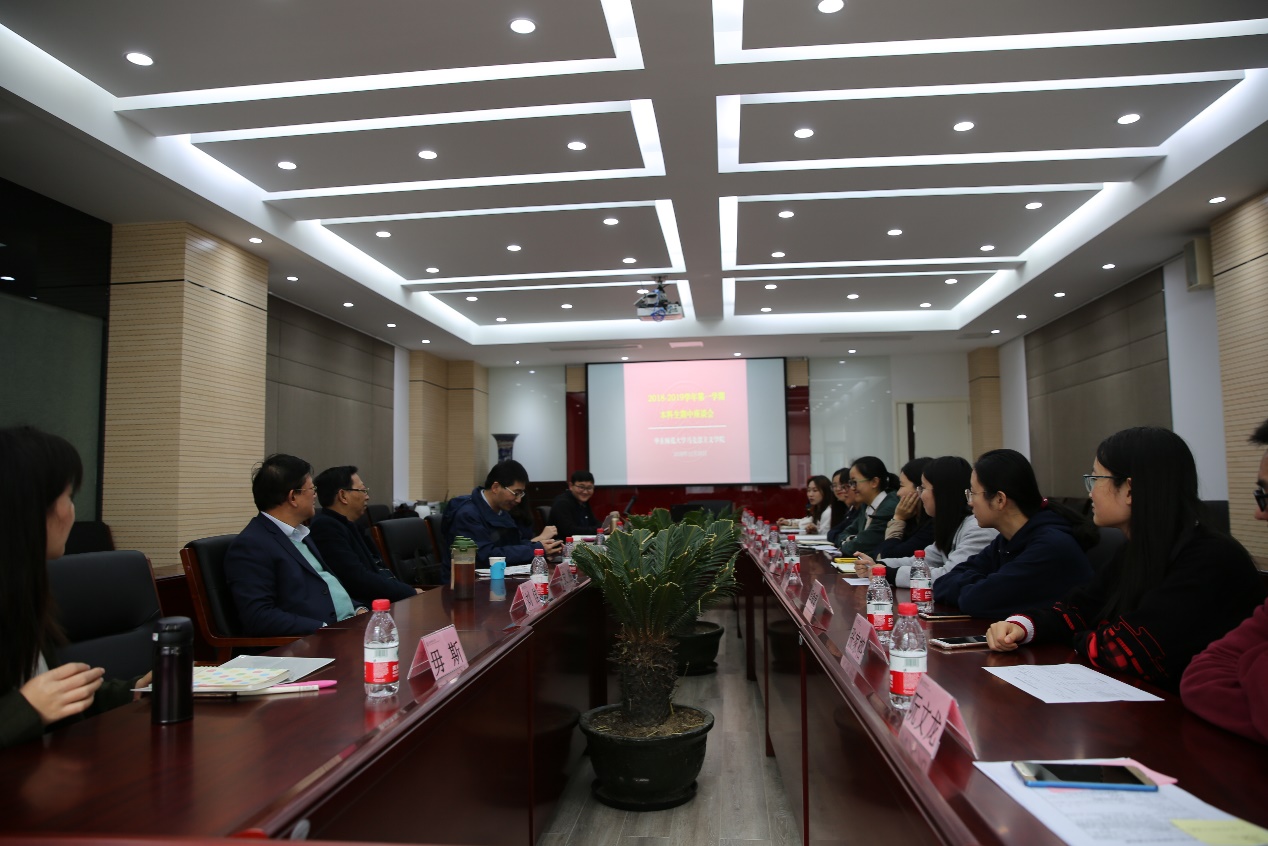 为贯彻落实全国教育大会的精神,进一步加强和改进思想政治教育本科专业的课堂教学工作,我院思想政治教育专业2018-2019学年第一学期本科生师生座谈会于2018年11月28日下午13:00在法商北楼225会议室举行。会议由我院副院长、思政系主任许瑞芳老师主持,我院院长顾红亮教授、我院王书会老师、史俊老师、叶方兴老师、翟贤亮老师、本科生教务员毋斯、本科生辅导员刘佳以及本科3个年级10位学生代表参会。会议就当前本科阶段思想政治教育专业的课程设置、教师授课、教学条件、教学管理、培养方案等方面的内容向同学们征求意见。