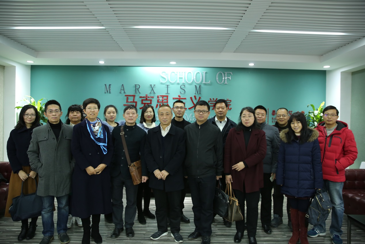 12月19日上午,华中科技大学马克思主义学院党委副书记、副院长林岚、中国近现代史纲要教研室主任张德鹏、中国近现代史纲要教研室副主任、党支部书记杜志章等一行10人来我院交流工作。双方在马克思主义学院法商北楼225会议室进行了深入交流,我院党委副书记崔海英、中国近现代史纲要教研部党支部书记安俭教授、杨丽萍副教授、宋宏副教授、侯艳兴副教授等8人参加了交流研讨。