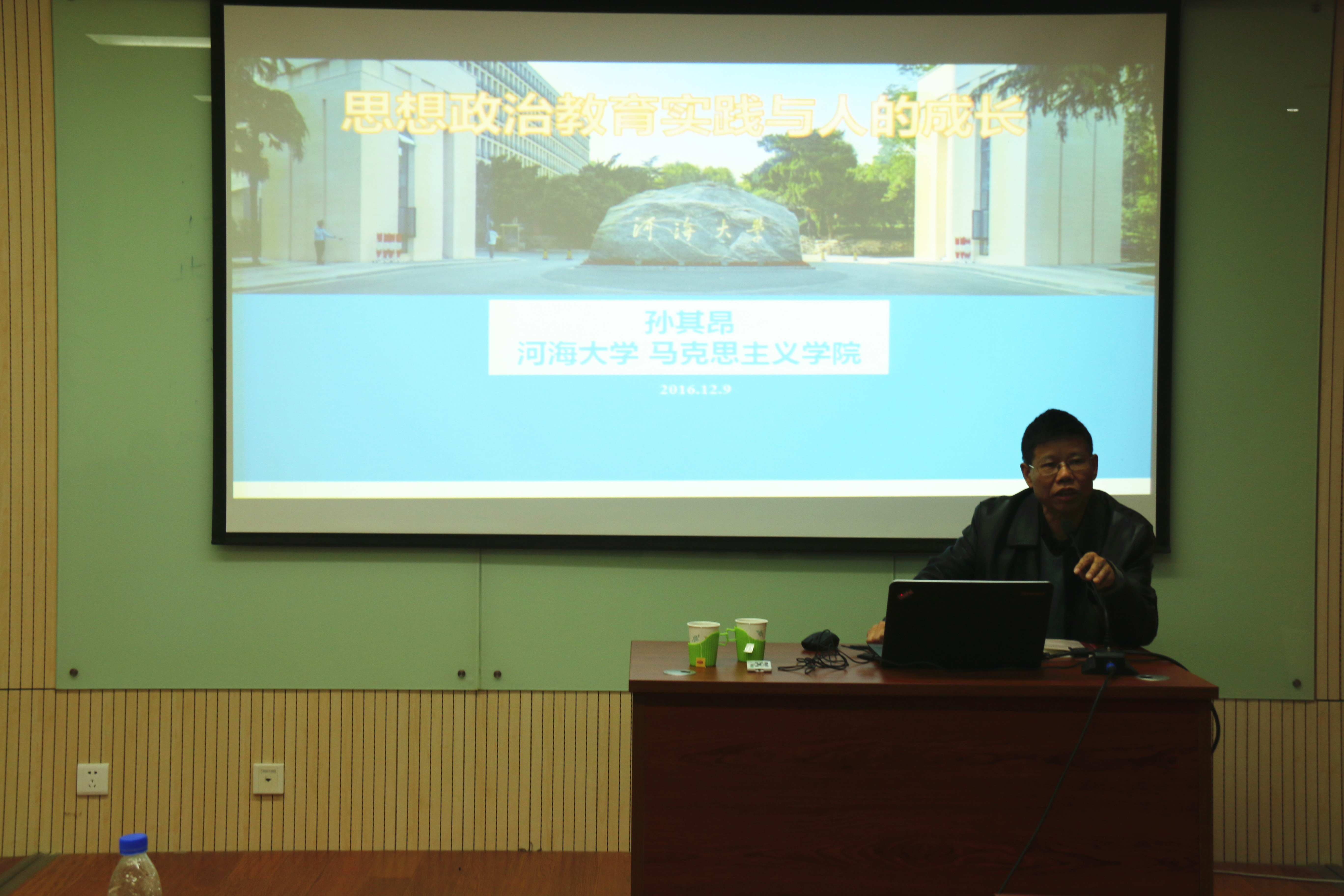 12月9日下午,河海大学思想政治教育研究所所长孙其昂教授在法商北楼一楼报告厅为我院师生作了题为“思想政治教育实践与人的成长”的专题报告。讲座由学院副院长许瑞芳主持。