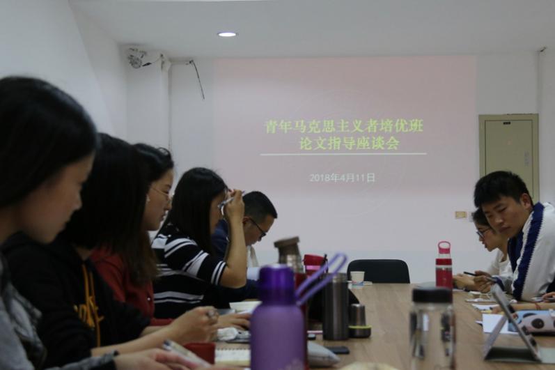 4月11日下午,马克思主义学院青年马克思主义者培优班论文指导会举行,马克思主义学院特聘教授邱伟光、校党委宣传部副部长夏建国对马克思主义学院青年马克思主义者培优班(以下简称“马院青马班”)学员研读经典著作撰写的论文进行指导。