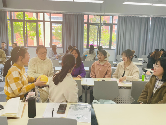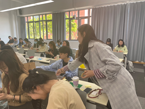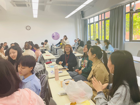 班会的第三个活动是“压力圈”小游戏,同学们分为7个小组,每组10人,每组的组员们围成一圈,以“丢球球”的形式展开,由任意一人开始抛球并提出问题。拿到球的同学要回答并抛出球,向下一位接到球的同学提问。通过这个小游戏,同学们畅所欲言,吐露心声,分享自身近期的压力和面临的难题,从而有效缓解压力。