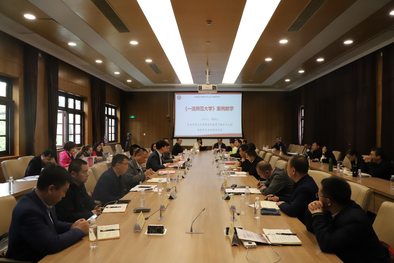 在案例教学环节中,三组学员围绕“一流师范大学建设”这一课程大纲,分别以“一流师范大学建设的经验与启示----以上海师范大学为例”“陕西师范大学双一流大学建设启示”“杭州师范大学新师范专业建设研究与启示”三大主题进行汇报。“相互借鉴,共同提高”,学员通过对三所师范大学精神内涵、核心要素、管理制度、发展历程、文化特征等要素的研究,梳理了师范大学建设一流学科的基本经验、客观条件、策略方法和实践举措等,并提出了新疆师范大学建设一流师范大学及一流学科建设的行动建议。案例教学通过陈述、提问、答辩、点评四个部分展开,学员准备充足,材料详实。胡耀宗、张俊华充分肯定了团队汇报的成果并作了点评。