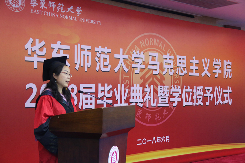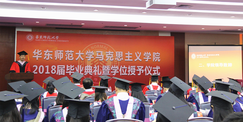 6月15日上午,马克思主义学院2018届毕业典礼暨学位授予仪式在教师之家三楼报告厅举行,校党委常委、马克思学院院长顾红亮及学院党政班子成员,导师代表,2018届毕业生和部分学生家长参加了典礼。2018届本科毕业生杨迪同学、硕士毕业生张磊同学主持典礼。