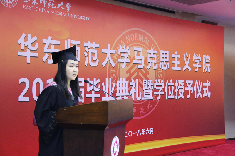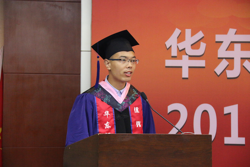 研究生代表、马克思主义发展史专业硕士毕业生石超代表研究生发言:学在华师大,爱在华师大,这所有大师、有底蕴、有温情的优雅学府,培养了一批又一批优秀的华师学子,作为毕业生收获硕果也肩负重任,新的起点,新的征程,定将谨记师长教导,全力以赴,在新的人生征途书写华丽的人生篇章!