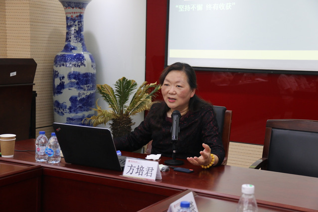 对于教师的专业成长,方培君教授认为是这是一个渐进的过程。方老师结合自身专业成长经历,认为新教师向学科专家型教师发展的过程中,教学水平和职业认同感也在不断提升。因此,她对在场的同学在未来教师专业成长的发展提出了三点建议。第一,青年教师应脚踏实地对待工作,勇于克服和坚持工作中的艰难与辛苦,耐得住寂寞与批评。第二,青年教师应增强忧患意识。方老师认为,对于教师而言,学习之路不应停止,而应主动学习对工作有所助益的知识,夯实专业功底。第三,青年教师应积极参加培训。方老师认为,培训为青年教师的发展搭建了良好的平台。青年教师应端正态度,把握每次培训学习的机会。
