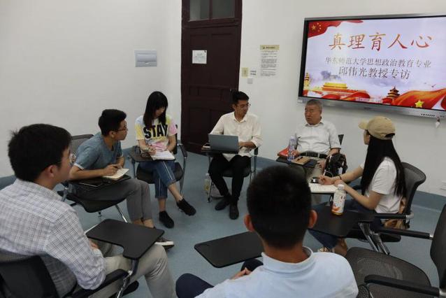 5月24日下午,马克思主义学院思政专业部分本科学生党员在中北文史楼114对华东师范大学思想政治教育研究中心副主任邱伟光教授进行专访。