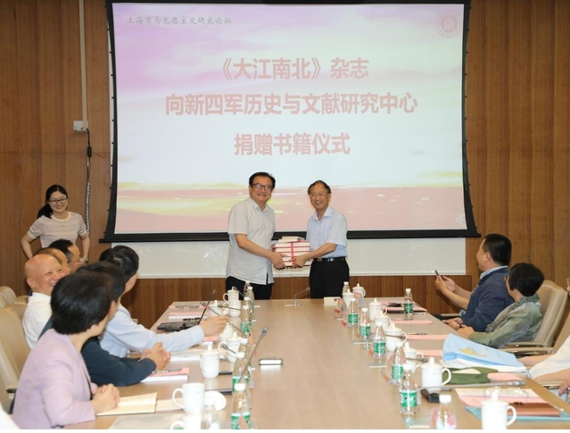 2月18日,习近平总书记给上海新四军研究会的46位百岁老战士回信,提出“讲好中国共产党的故事、党的光荣传统和优良作风”的要求。为更好地开展新四军研究、传承和弘扬铁军精神,华东师范大学马克思主义学院决定成立“新四军历史与文献研究中心”,由曹景文教授担任中心主任。会上,《大江南北》杂志社社长杨元华教授向曹景文教授赠送了该杂志创刊以来的全套合订本,为开展新四军研究提供了宝贵的文献资料。