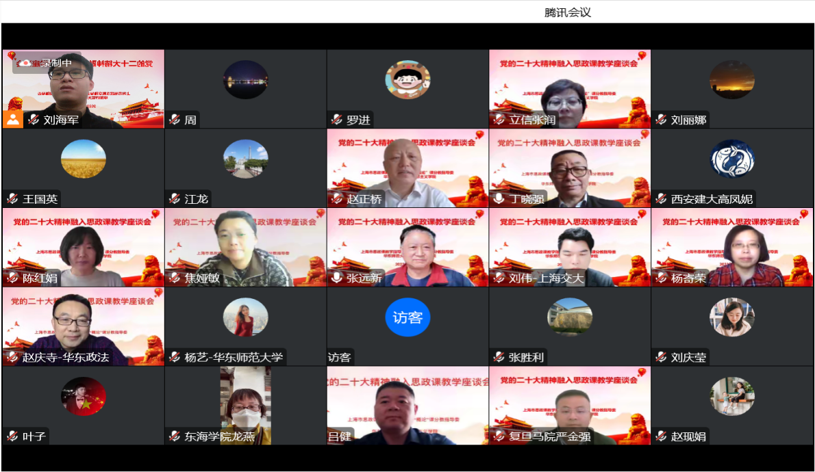 2022年10月23日,中国共产党第二十次全国代表大会在北京胜利闭幕。为深入学习宣传贯彻党的二十大精神,华东师范大学马克思主义学院举办了座谈会,上海高校一些马克思主义学院教师畅谈学习党的二十大精神,并对二十大精神如何融入思想政治理论课进行了热烈讨论。